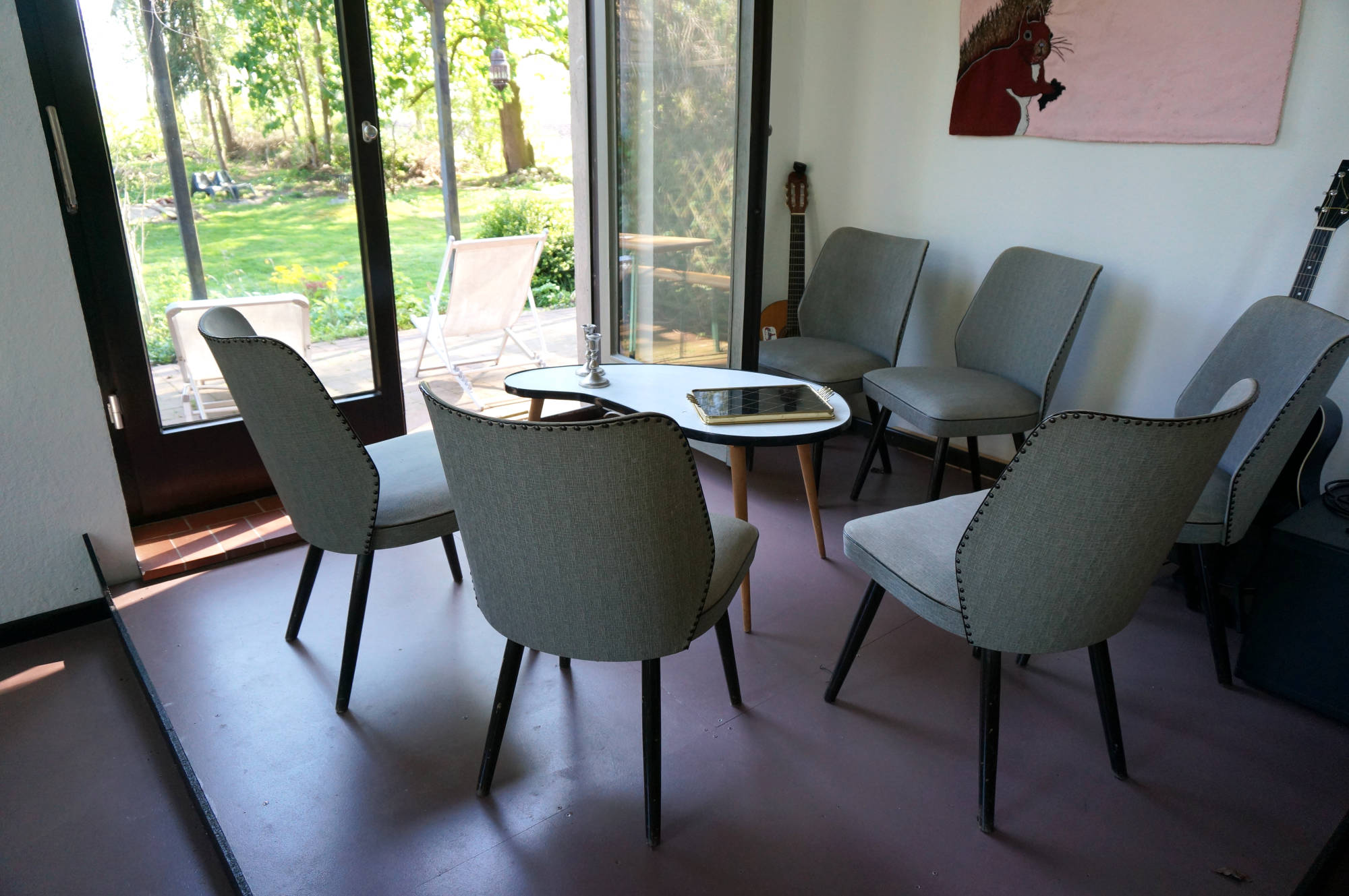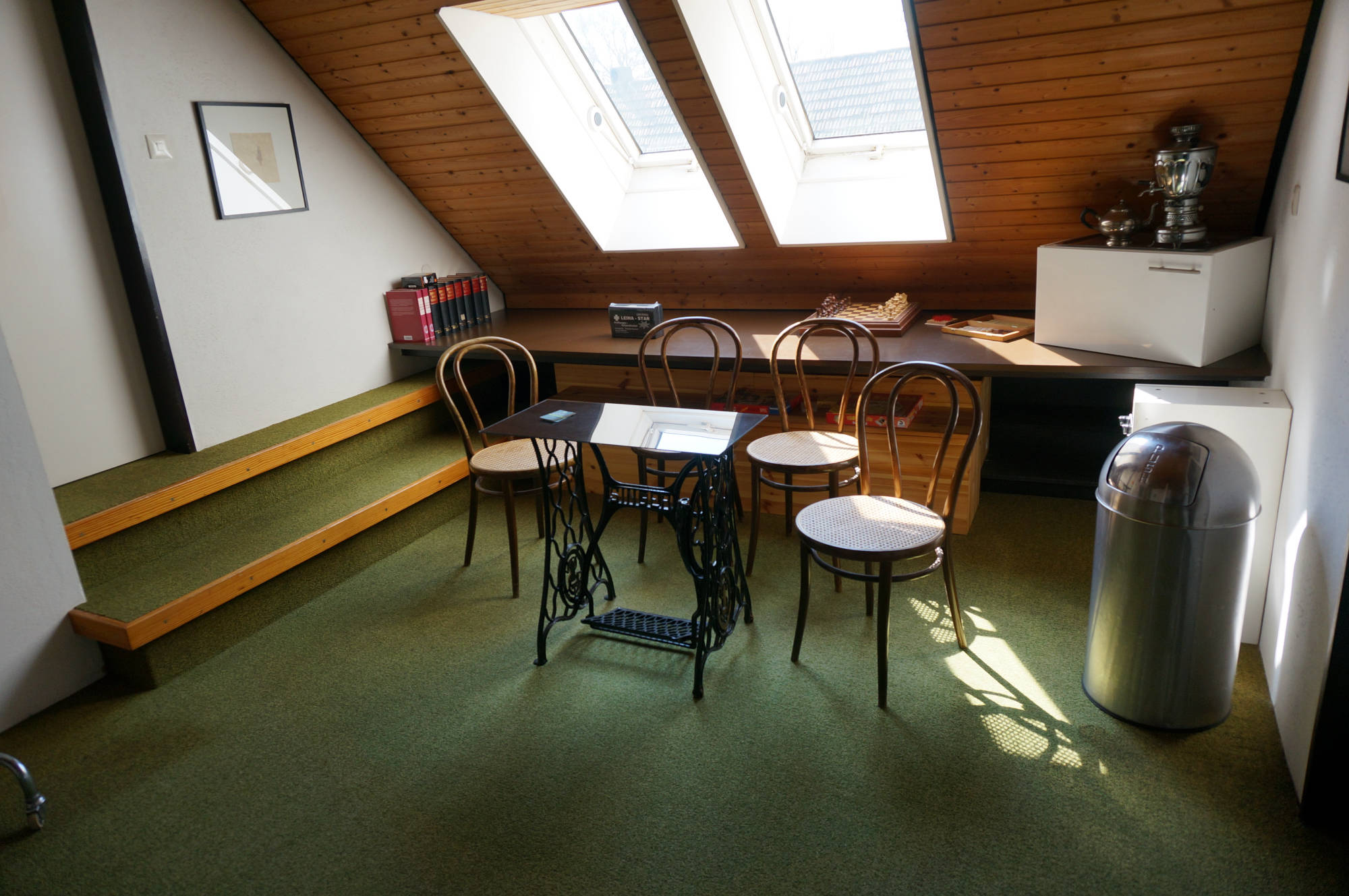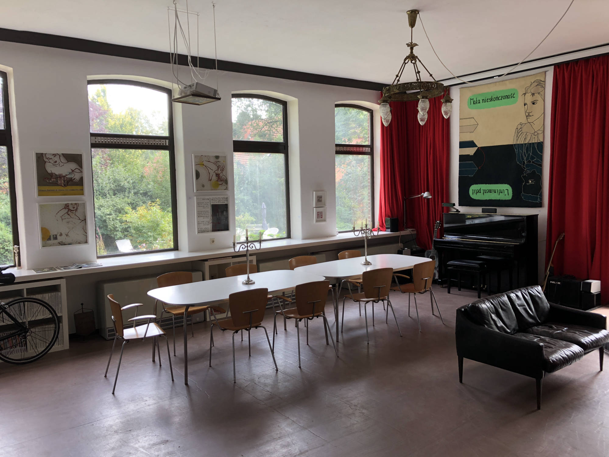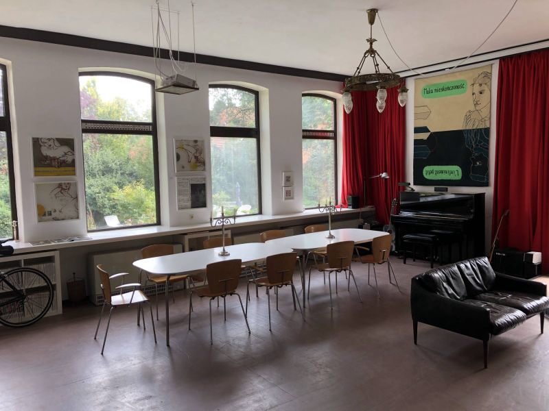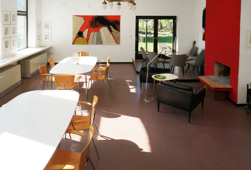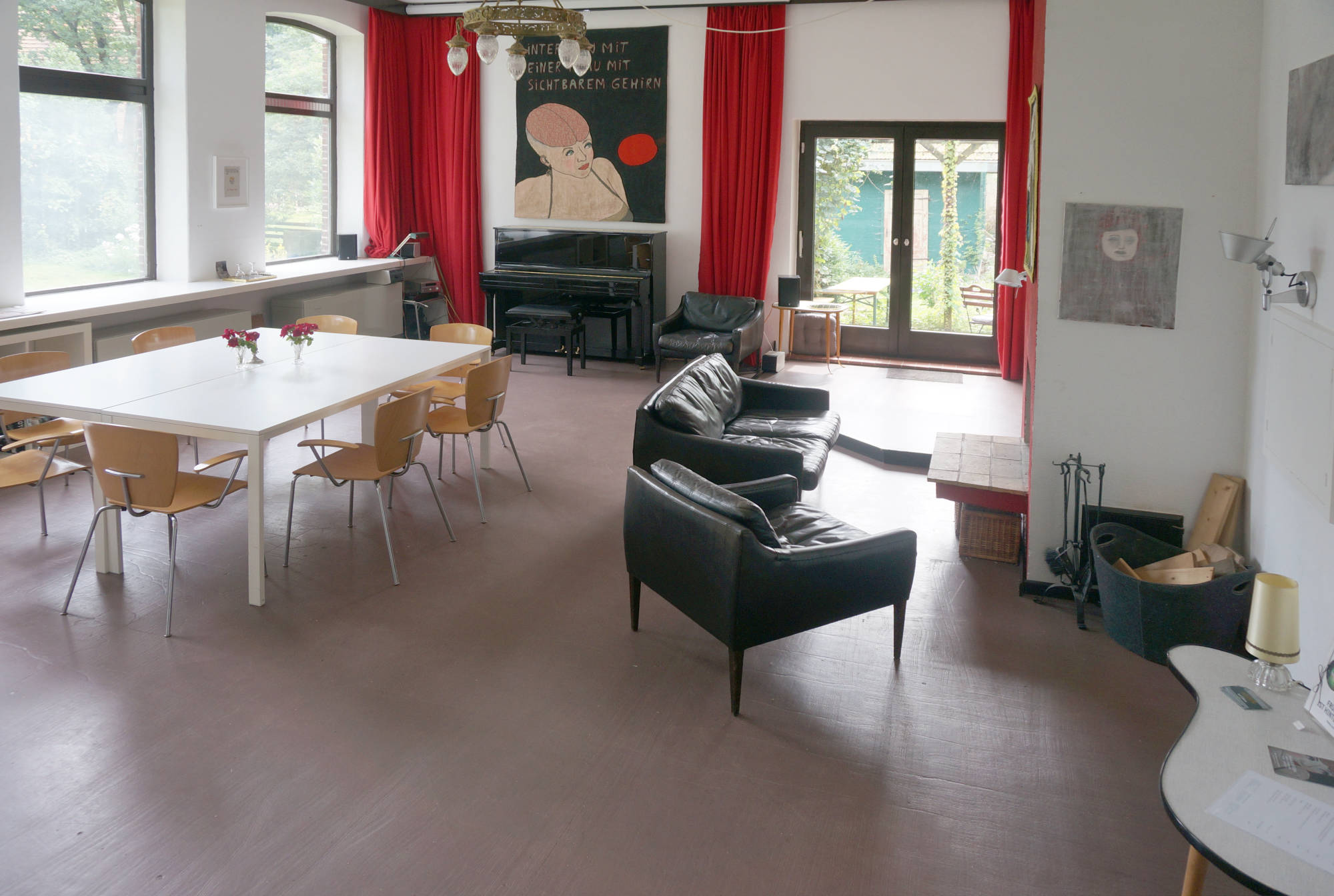Einige Jahre diente dieser Raum als Frühstücksraum für unsere Bed & Breakfast- Gäste, als Veranstaltungsraum für zahlreiche Filmabende, Lesungen und Hauskonzerte (mit kleiner Bühne) sowie als Ausstellungsraum und ist derzeit noch Arbeitsplatz sowie Ort für geselliges Beisammensein mit unseren privaten und geschäftlichen Gästen. Am langen Tisch gemeinsam speisen, trinken und feiern oder am offenen Kamin sitzen und ein Feuer entfachen - vieles ist hier möglich.