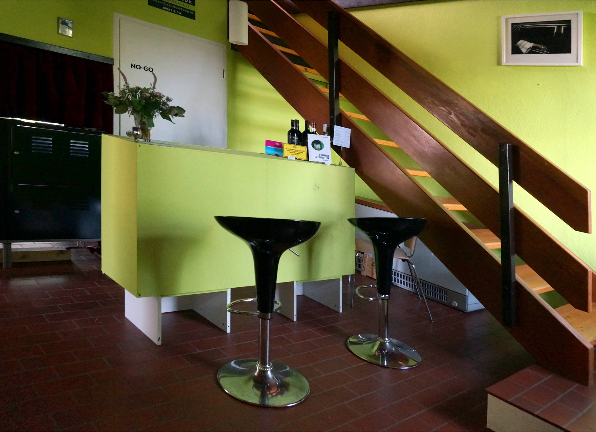 Anfang 2015 erwarben wir das Haus und gründeten eine Galerie, welche sich in den kommenden Jahren einen Namen machte. Ebenso etablierten wir ein Bed&Breakfast und vermieteten 2 Doppelzimmer und 1 Einzelzimmer sowie ein Wohnatelier, welches wir insbesondere Künstler:innen zum temporären arbeiten anboten. Da uns die Arbeit mit dem Bed&Breakfast (wir vermieteten 7 Tage die Woche und beherbergten in den Jahren hunderte von Gästen) keine Zeit mehr für zahlreiche weitere Projekte mehr ließ, entschieden wir uns Ende 2019 zur Aufgabe des Betriebs und konzentrierten uns seitdem nur noch auf die Galerie und verschiedene Projekte wie das Worpsweder Artfestival sowie weitere Ausstellungsprojekte.