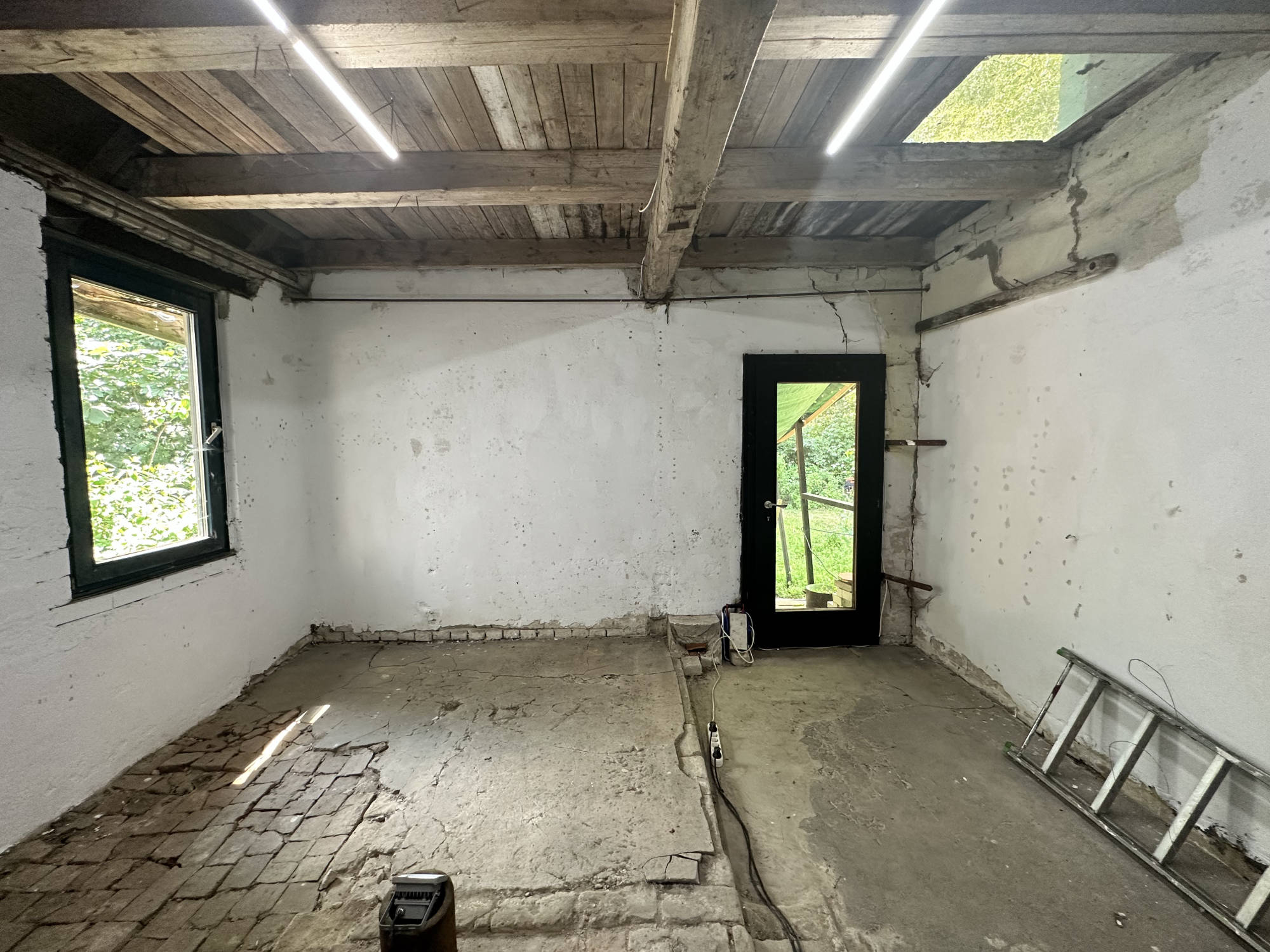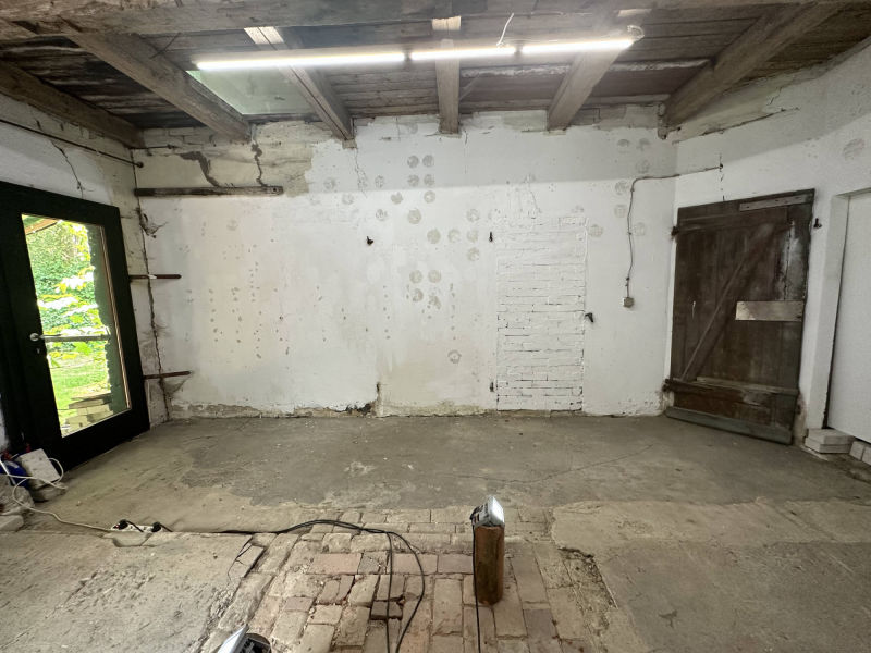 Des Weiteren befindet sich auf dem Grundstück noch ein massives Nebengebäude (ca. 90 qm mögliche Wohnfläche) in sanierungsbedürftigem Zustand. Hier sind Erdgas- und Kanalanschlüsse bereits gelegt. Dieses Gebäude wird derzeit als weiterer temporärer Ausstellungsraum genutzt.