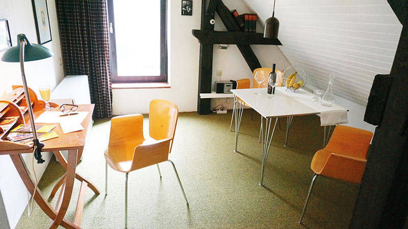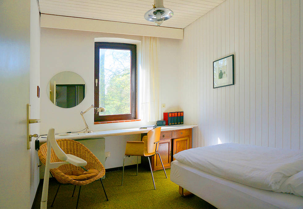 Vier der Zimmer wurden seinerzeit von uns vermietet, heute haben wir dort ein Wohnatelier, zwei Gästezimmer, das Schlafzimmer und einen Lagerraum.