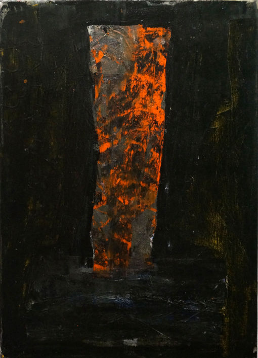 Die „Folioabstracts“ finden sich sowohl auf schwarz bemalten Holzplatten als auch auf Leinwänden, auf welche bemalte Folienreste („Abfallprodukte“ verschiedener anderer Malarbeiten) gesetzt, einige Tage getrocknet und danach teilweise wieder abgezogen werden.