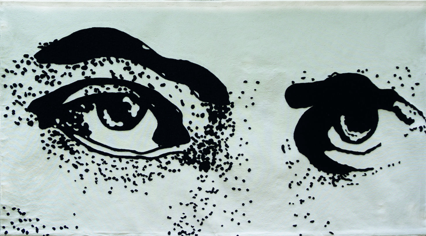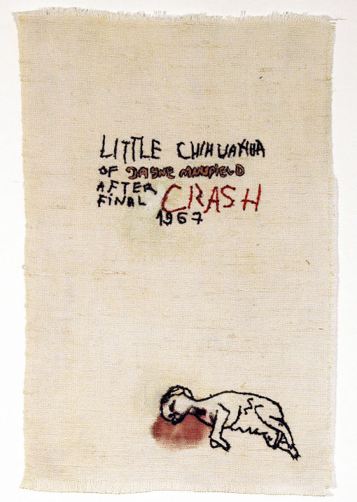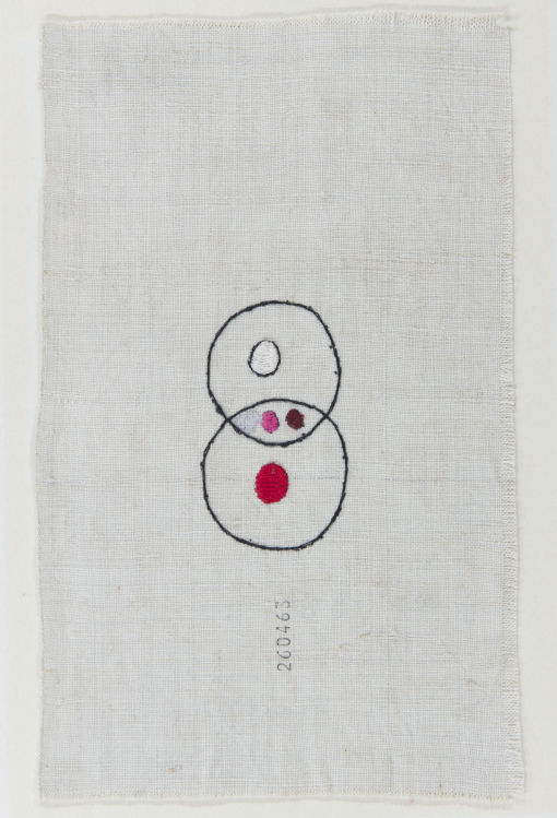 INTERVIEW MIT EINER FRAU MIT SICHTBAREM GEHIRN, 2011, Stickerei mit Schurwolle, Acryl, Jute, 190 x 140 cm, Preis 10.890