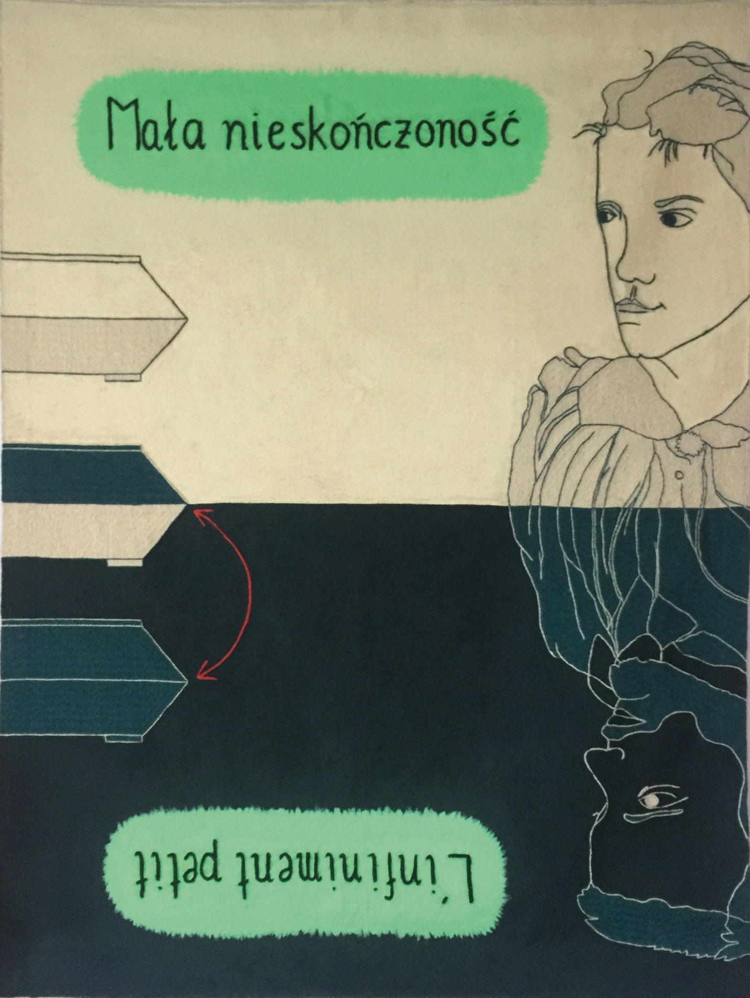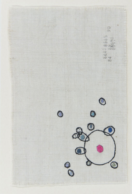 Das unendlich Kleine (Marie und Pierre Curie), 2013, Stickerei mit Schurwolle, Acryl, Jute, 200 x 150 cm, Preis € 11.550