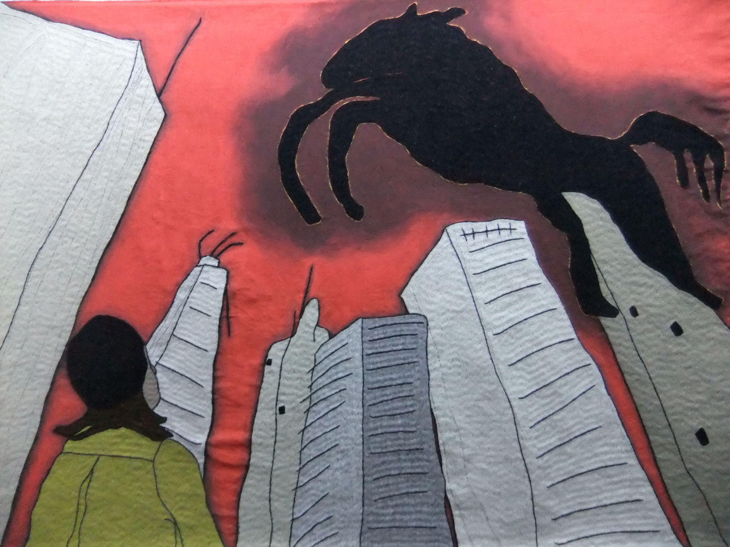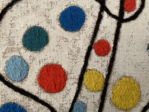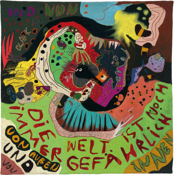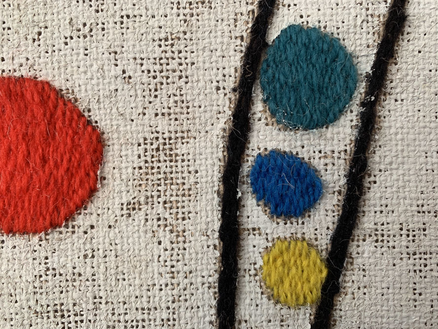 Visitor, 2020, Stickerei mit Schurwolle, Acryl, Jute, 175 x 306 cm (Sammlung Große Kunstschau, Worpswede)