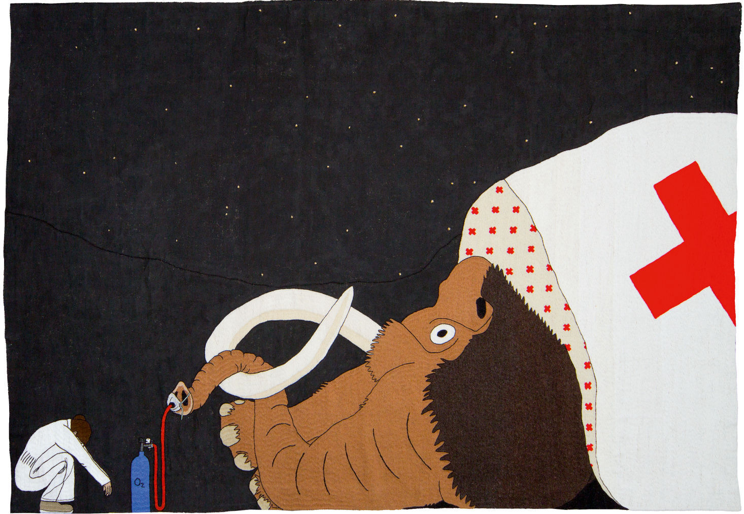 DER STUMPF WIRD HEILEN, 2011, Stickerei mit Schurwolle, Acryl, Jute, 150 x 200 cm, Preis € 11.550