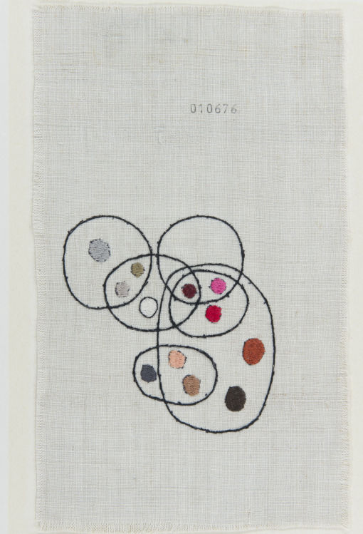 Blank, 2019, Stickerei mit Schurwolle, Acryl, Jute, 200 x 200 cm,