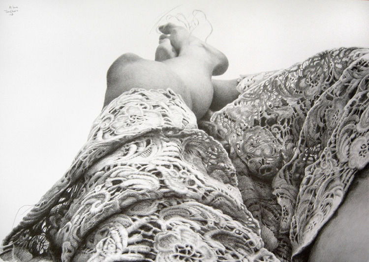 Eine weitere, bereits viele Jahre zurückliegende Arbeit war Teil der Serie „Erstickungen“ und ist betitelt mit „Santa Medusa – Schutzheilige der Dauerndgetrenntlebenden“. Immer wieder beschäftigt sich Marie S. Ueltzen mit diesen Schutzheiligen, die von Menschen zu solchen gemacht wurden. Warum? Wofür? Wieso brauchen wir „Heilige Menschen“, wieso Schutzheilige? Immer wieder stellt sie sich diese Fragen.