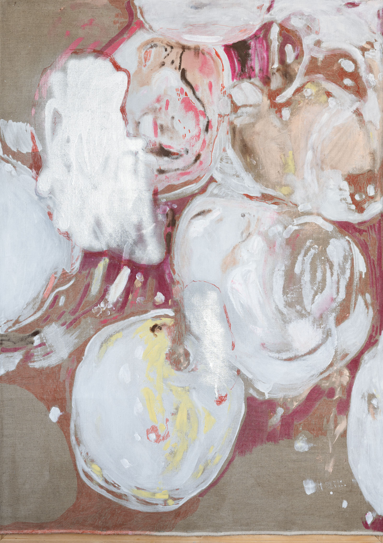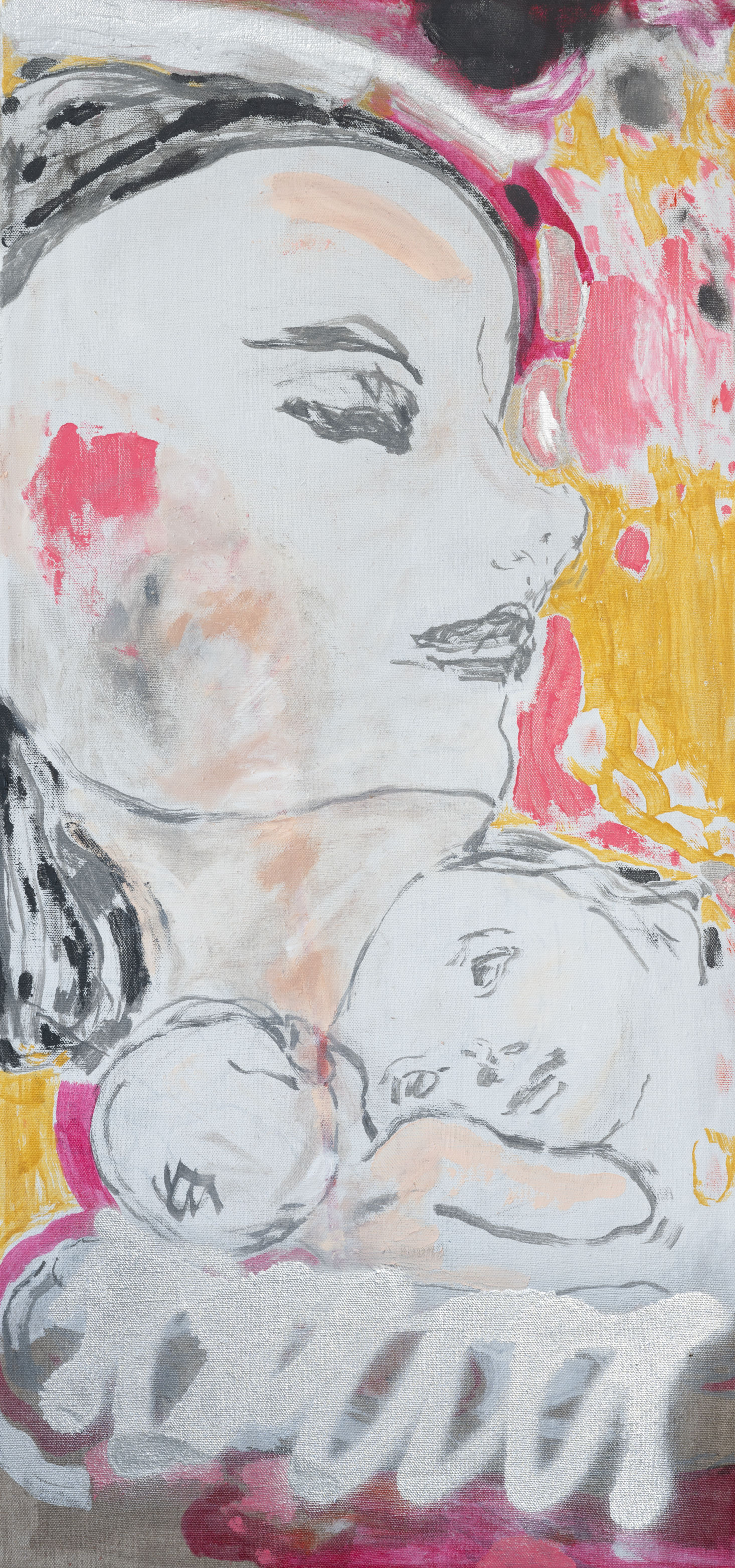 Sophie Scholls Zeichnungen erzählen von Kindheit, von Peter Pan, Wendy und den „lost boys“, von „Neverland“. Themen wie Verletzlichkeit, Schutz und Liebe, aber auch Aggression, Schmerz und Tod werden von ihr künstlerisch beleuchtet. Diese Motive Scholls sind in meiner hier zu sehenden Malerei und der einen Zeichnung von mir malerisch interpretiert, changierend zwischen expressiver Abstraktion und poetischer Gegenständlichkeit.